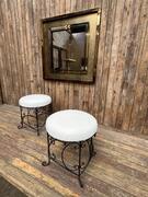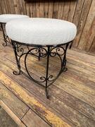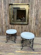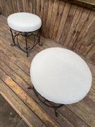 ➖ Pair of imposing metal stools, circa 1970, new white looped fabric upholstery. Nice and perfect condition. ✖️ Width 52 cm - Height 53 cm