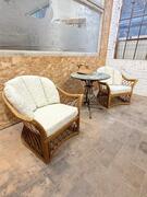 ➖ Pair of rattan armchairs, circa 1970, in very good condition, lovely color. Beautiful diamond weaving work for the structure, with removable seat and back cushions, white. Comfortable thanks to their rounded shape and integrated armrests. ➖ Width 80 cm - Depth 80 cm - Height 75 cm