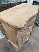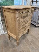 False washed oak chest of drawers with trompe-l'oeil drawers, circa 1900. Trompe-l'oeil plays on the confusion of the viewer's perception. Beautifully curved shape, In very good condition.