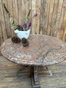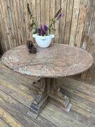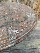 ➖ Beautiful PEDESTAL TABLE, circa 1940 ➖ Central cross-shaped wooden leg with original patina and circular, molded red marble top. Perfect condition. ✖️ Width 99 cm - Height 73 cm