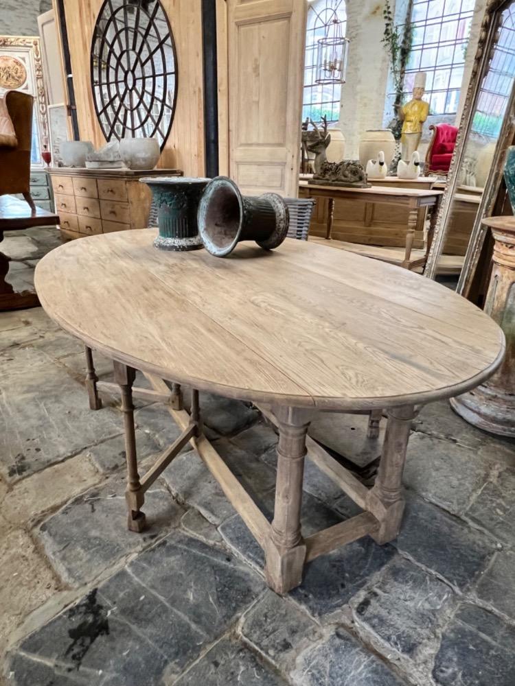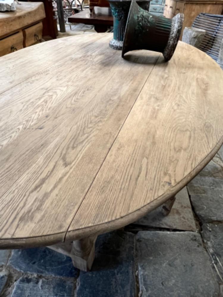 Large oval gate-leg table in washed oak, circa 1940, in very good condition. For sale