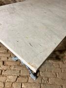 Large Alsatian bistro table, metal and marble top, circa 1920, very nice model and blue patina. For sale