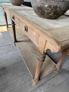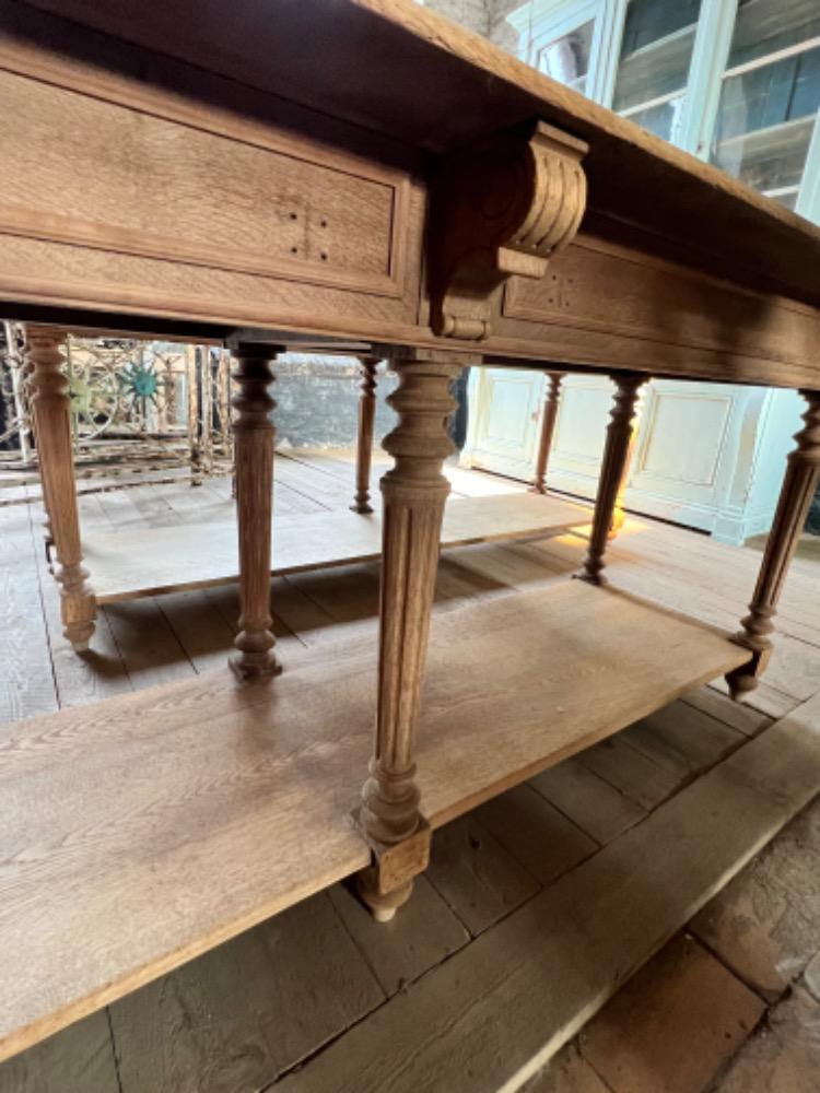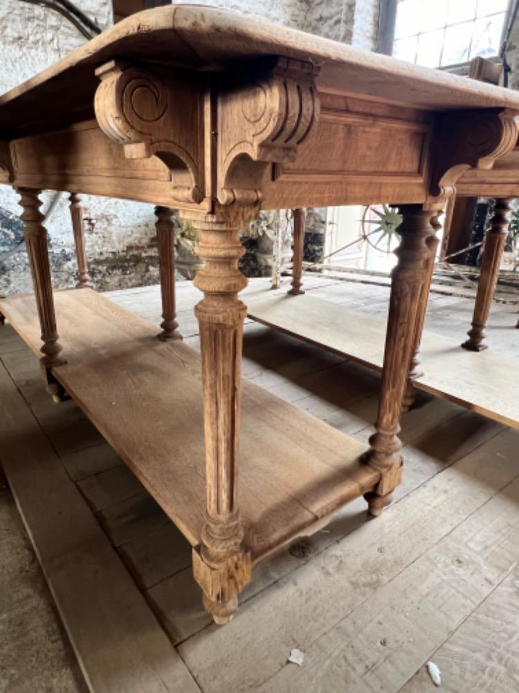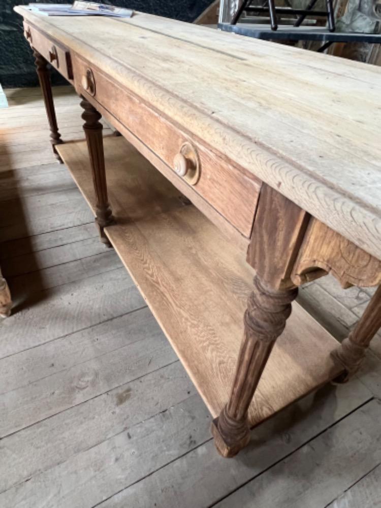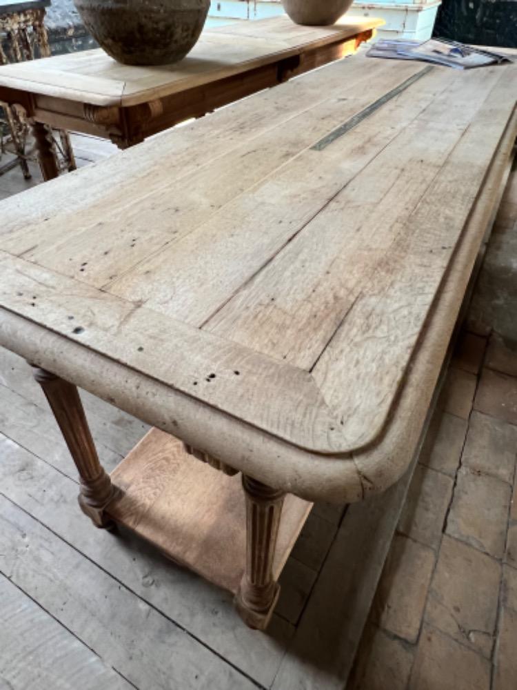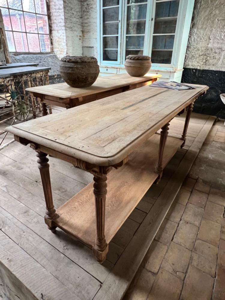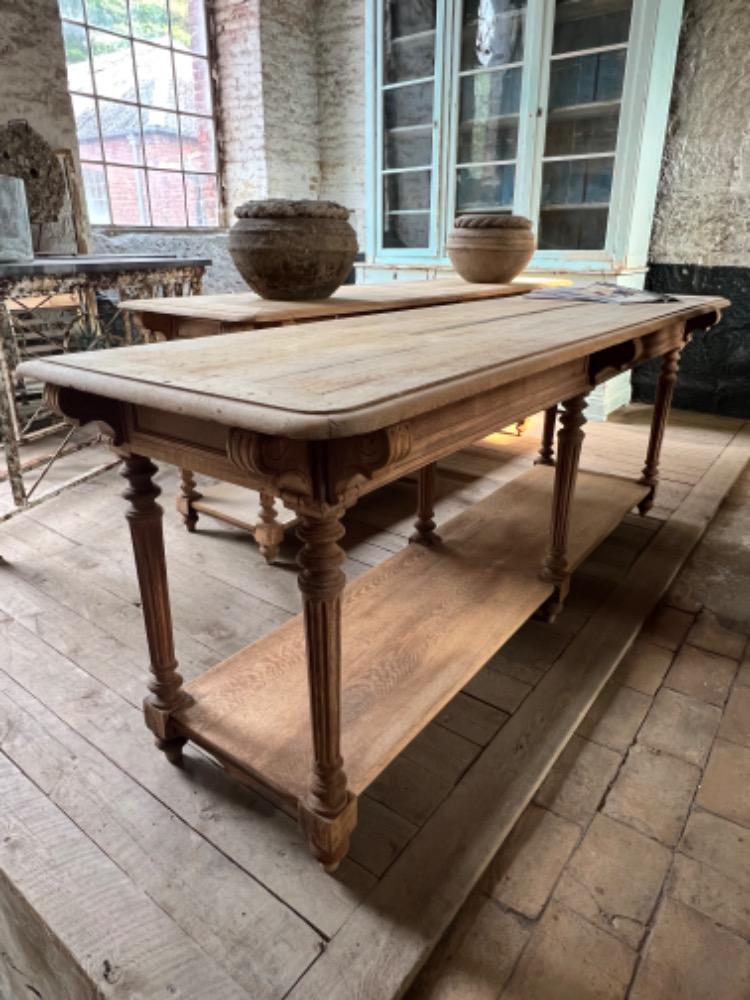 Exceptional pair of washed oak silk tables, circa 1880, with drawers at the back, in very good condition. For sale