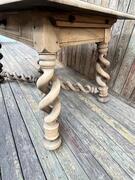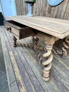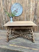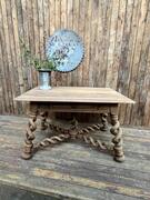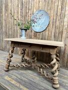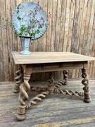 ➖ Alsatian presentation table, circa 1890, twisted legs worked in double tendrils and connected by a crosspiece topped with a central dowel in washed walnut, remarkable work ✖️ Length 120 cm - Width 79 cm - Height 75 cm