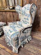 ➖ Very nice set of 2 bergère armchairs, reclining backrest with racks and 1 footrest, circa 1940, pretty fabric in good general condition except for a small fabric damage, 4 cm on the side of one armchair ✖️ Armchairs: Width 75 cm - Depth 66 cm - Height 148 cm ✖️ Footrest: Width 75 cm - Height 50 cm
